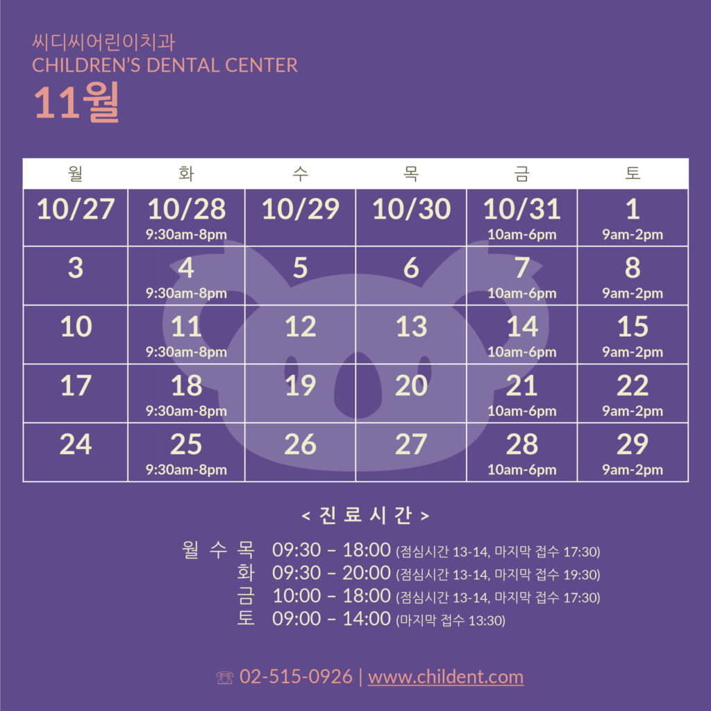 **어린이날, 크리스마스, 설-추석 연휴에는 진료가 없습니다.