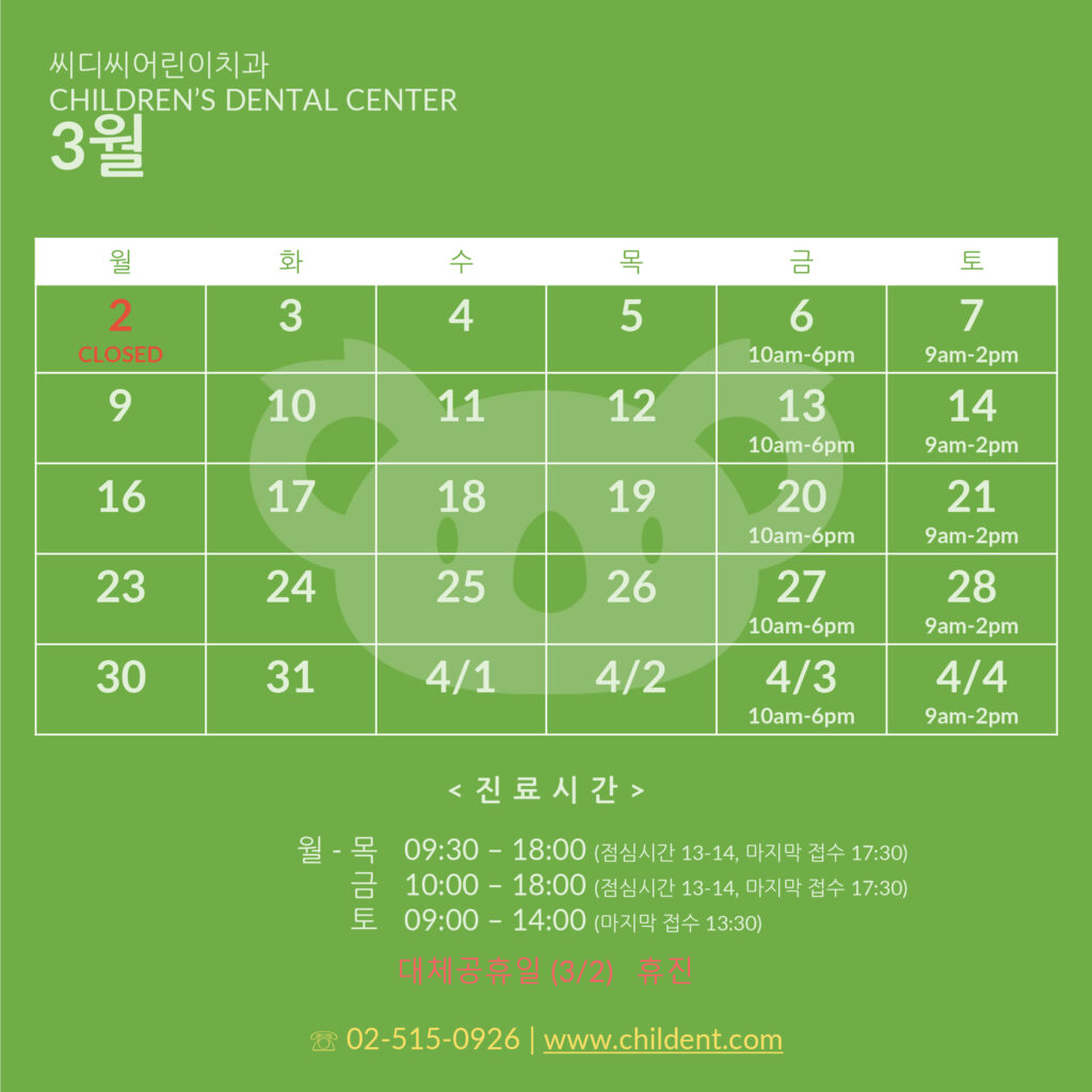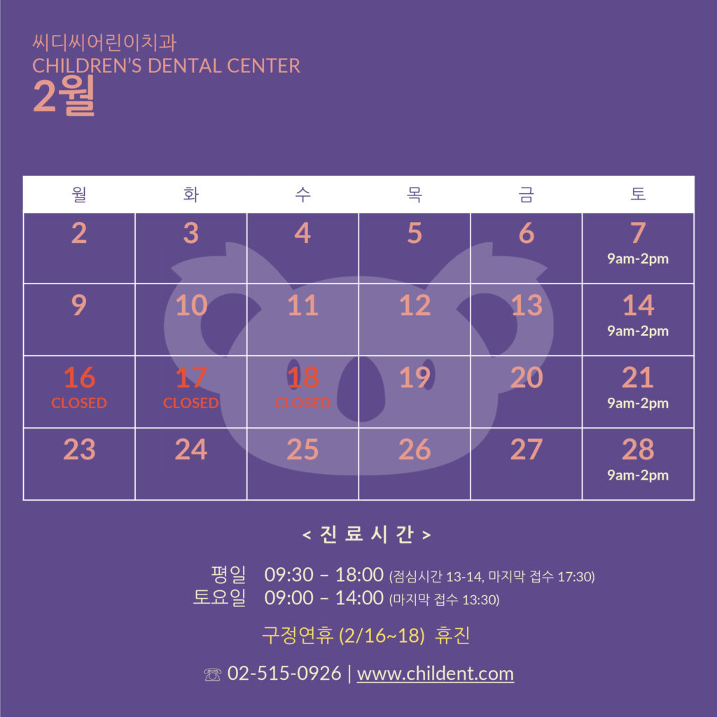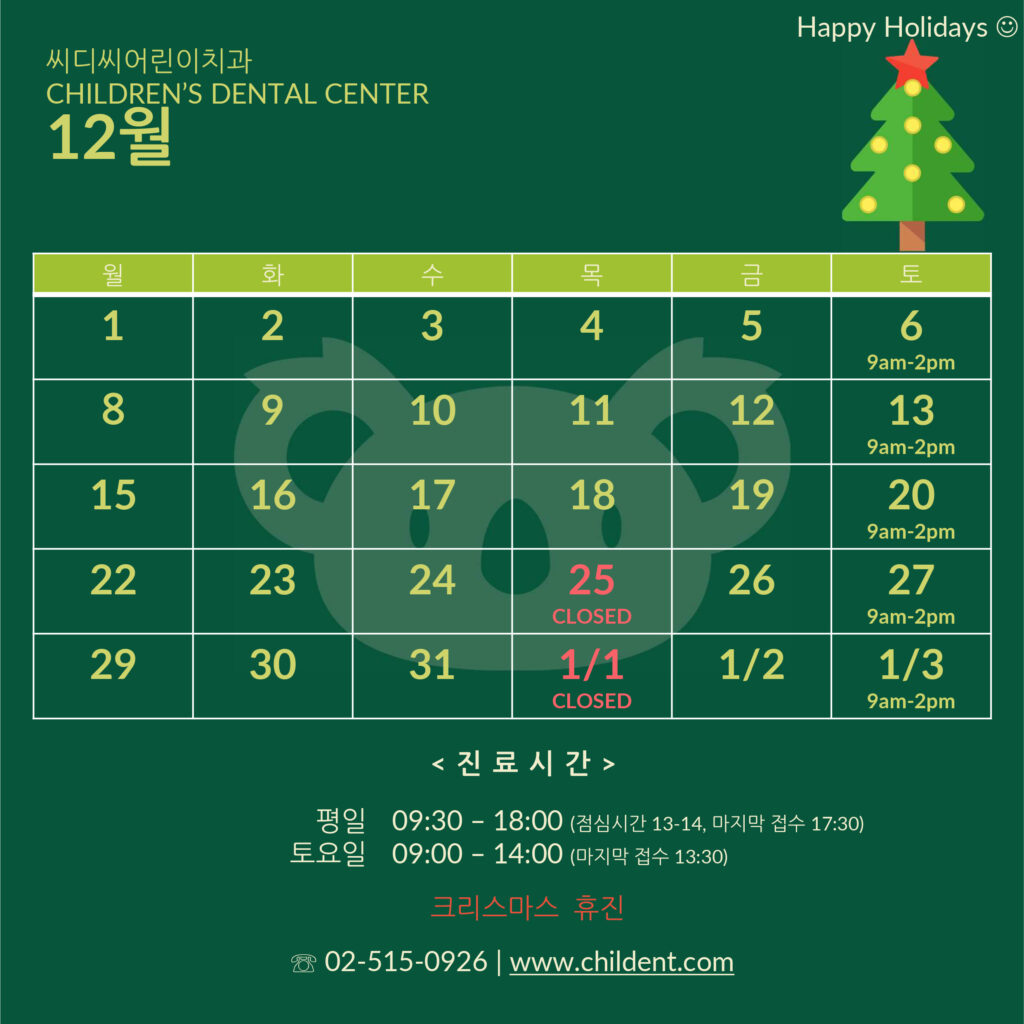 **어린이날, 크리스마스, 설-추석 연휴에는 진료가 없습니다.